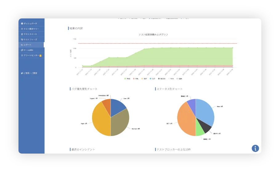 テスト実行側の起因ではないテストの阻害要因や、問い合わせ中のテストを把握・共有することで開発側とのコミュニケーションを円滑化できます。